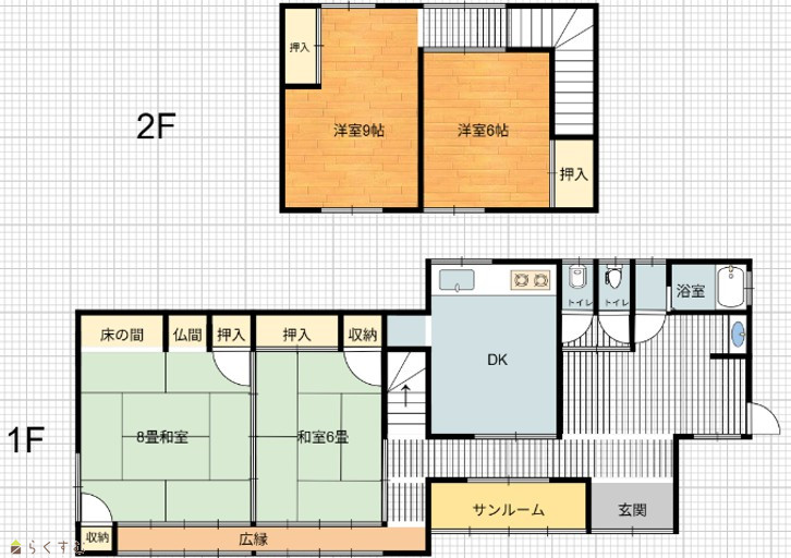 | 間取り | 4DK (和室:6畳、8畳) (洋室:6、9) | ||