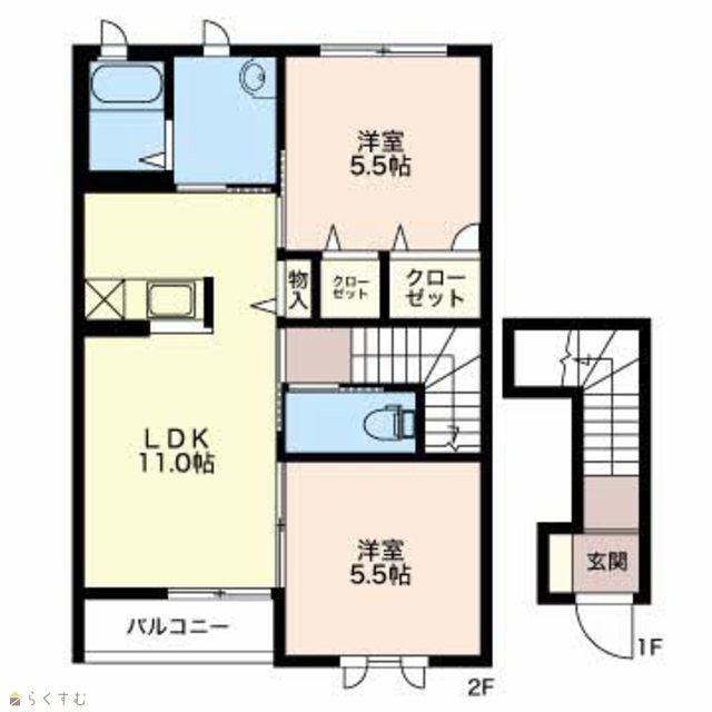 | 間取り | 2LDK (洋室:5.5、5.5) | ||