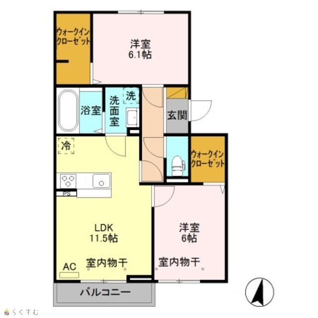 | 間取り | 2LDK (洋室:6.1、6) | ||