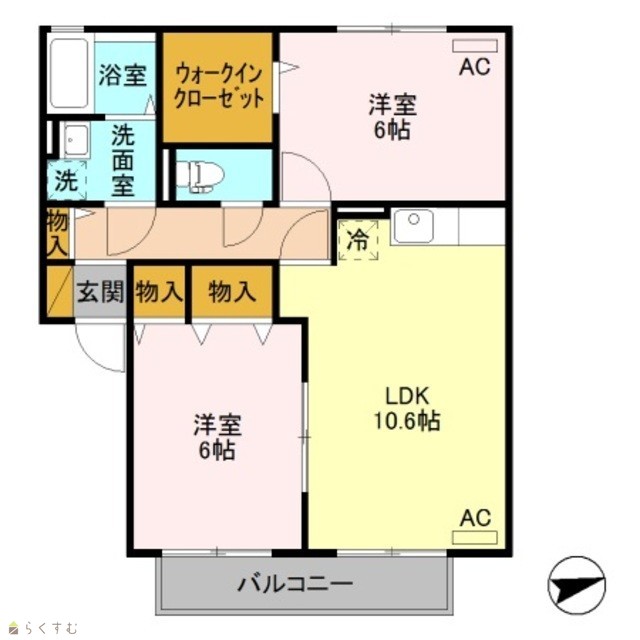 | 間取り | 2LDK (洋室:6、6) | ||