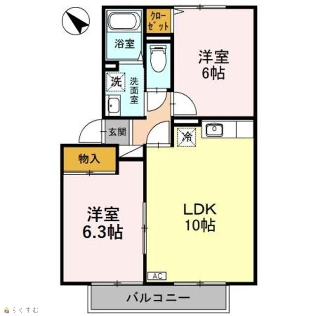 | 間取り | 2LDK (洋室:6、6.3) | ||