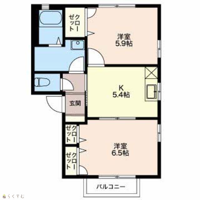 | 間取り | 2K (洋室:6.5、5.9) | ||