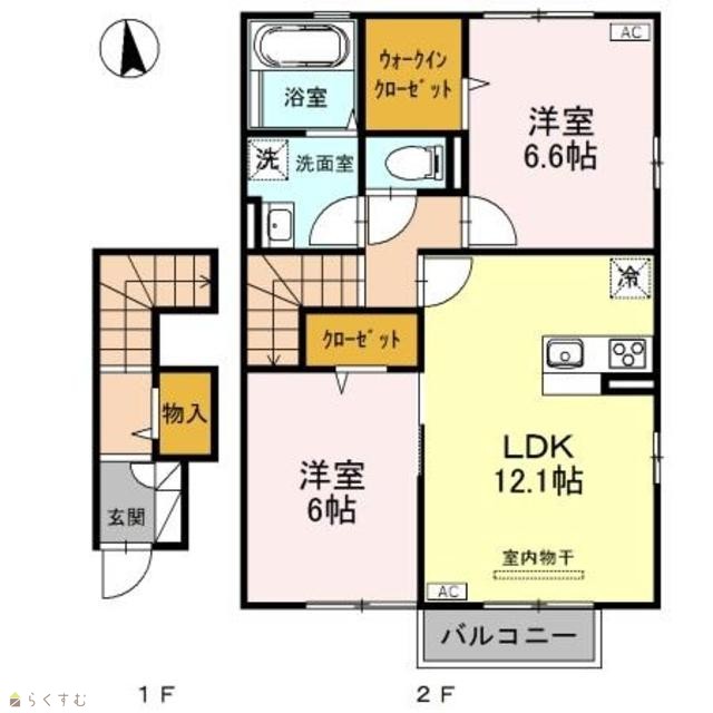 | 間取り | 2LDK (洋室:6.6、6) | ||