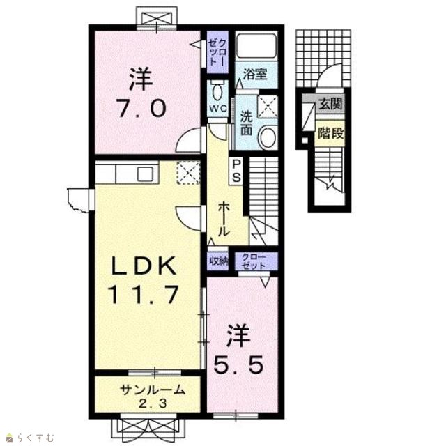 | 間取り | 2LDK (洋室:7、5.5) | ||