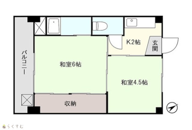| 間取り | 2K (和室:6畳、4.5畳) | ||