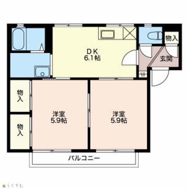 | 間取り | 2DK (洋室:5.9、5.9) | ||
