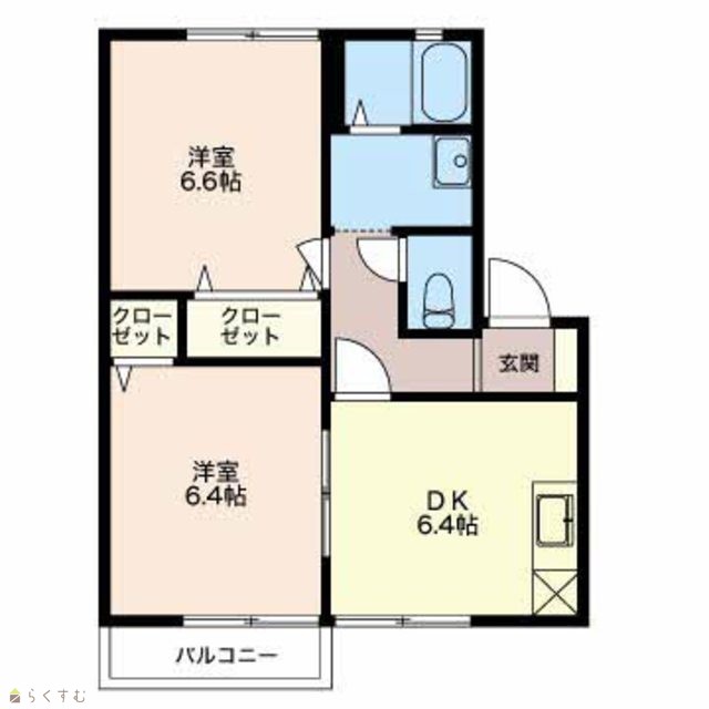 | 間取り | 2DK (洋室:6.4、6.6) | ||