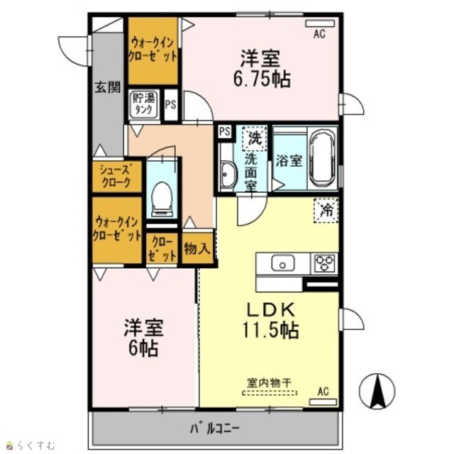 | 間取り | 2LDK (洋室:6.7、6) | ||