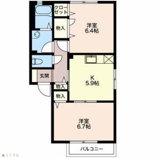 | 間取り | 2LDK (洋室:6.4、6.7) | ||