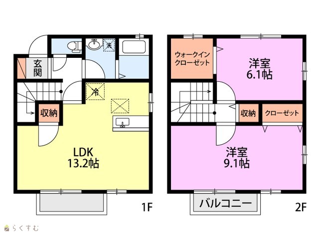 | 間取り | 2LDK (洋室:6.1、9.1) | ||