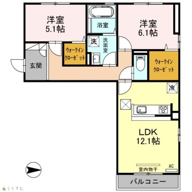 | 間取り | 2LDK (洋室:6.1、5.1) | ||