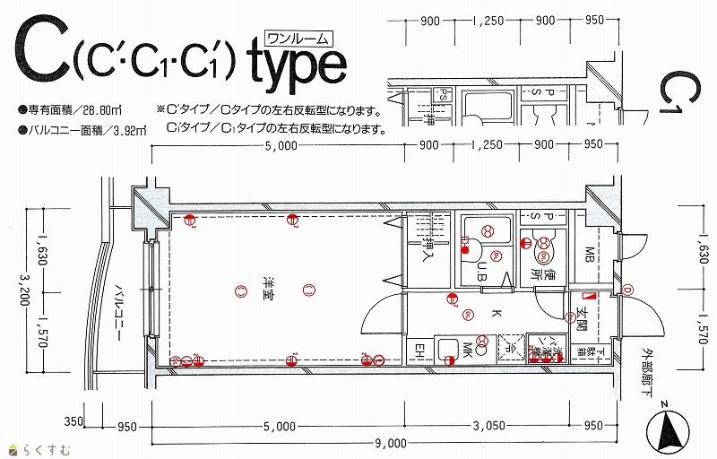 | 面積 | 28.8㎡ /8.71坪 | 方位 | 西 |