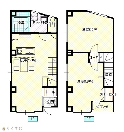 | 間取り | 2LDK (洋室:8.9、8.9) KDK14 |