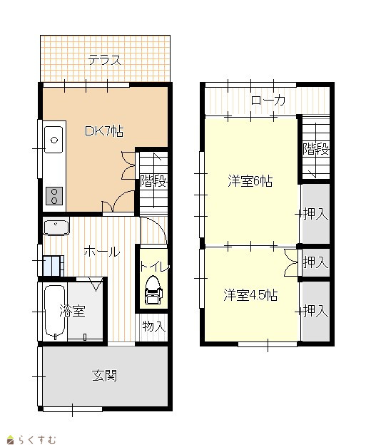 | 間取り | 2DK (洋室:6、4.5) DK7 |