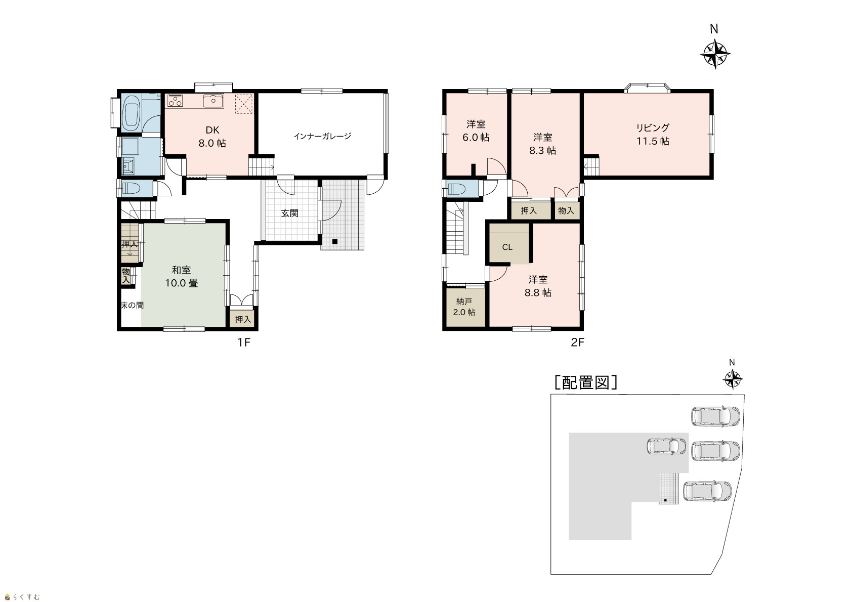 | 間取り | 4LDK (和室:8.0畳) (洋室:11.5、8.8、8.3、6.0) LDK16.0 |