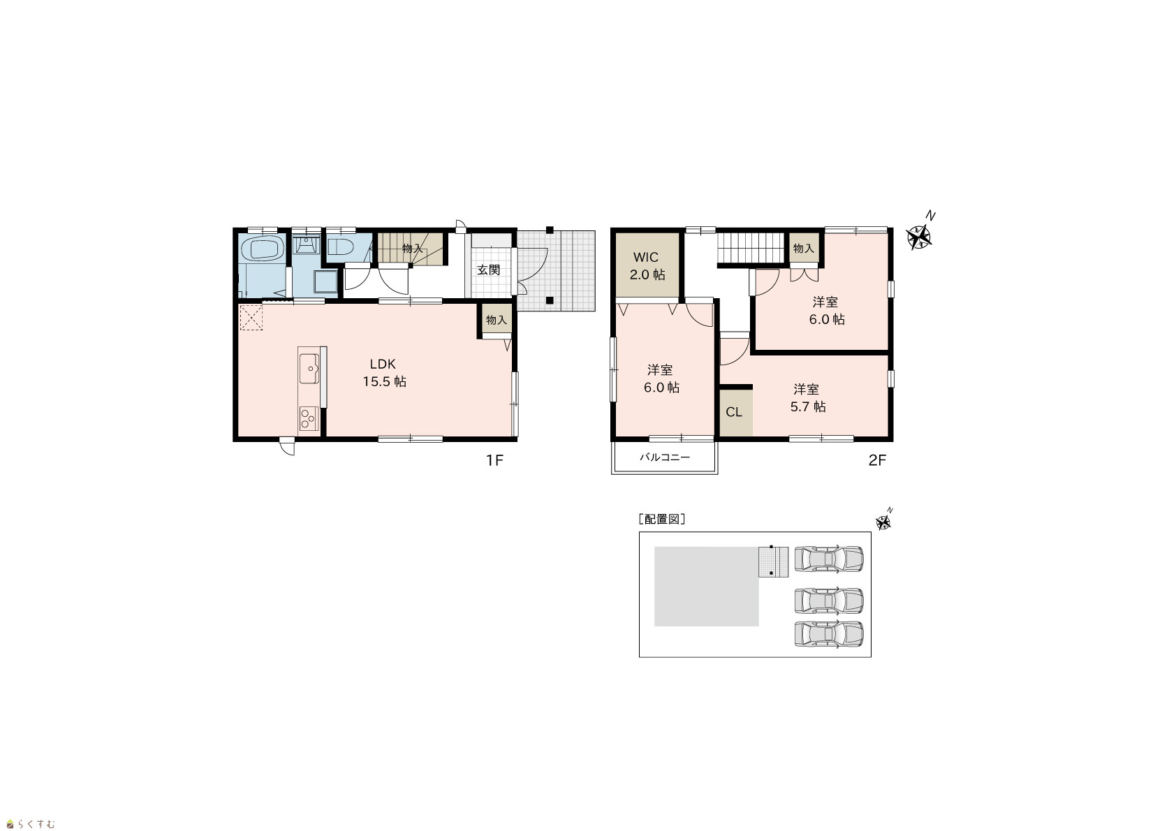 | 間取り | 3LDK (洋室:6.0、6.0、5.7) LDK15.5 |