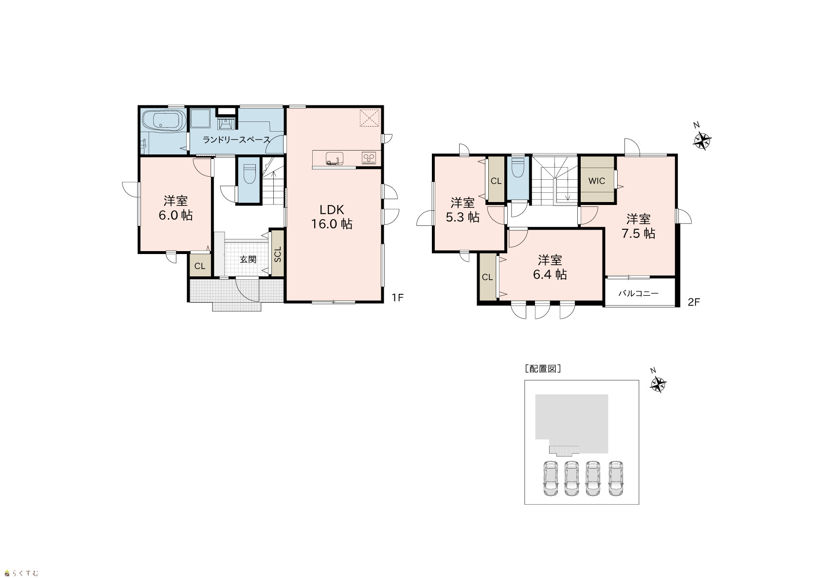| 間取り | 4LDK (洋室:6.0、7.5、6.4、5.3) LDK16.0 |