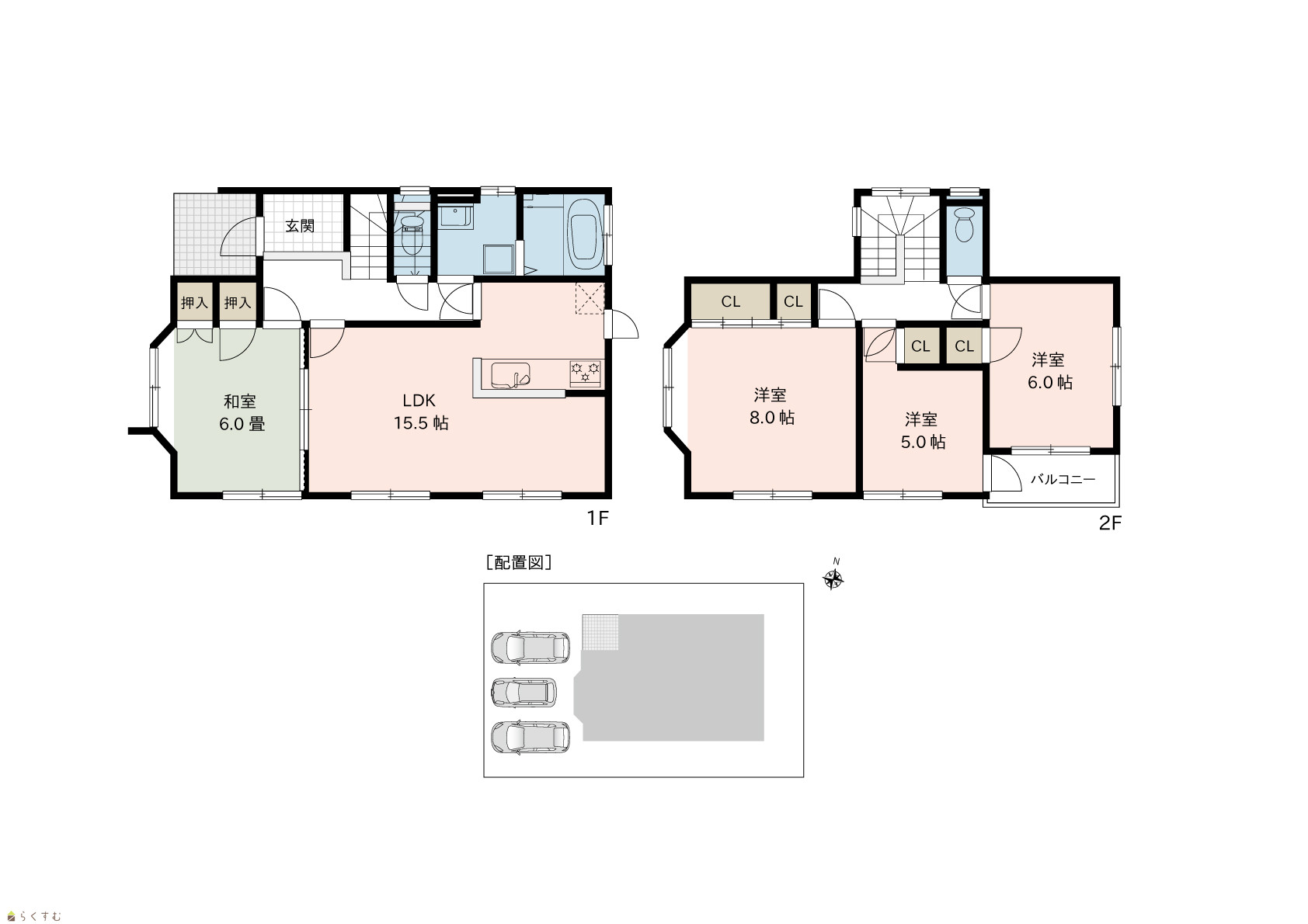 | 間取り | 4LDK (和室:6.0畳) (洋室:8.0、6.0、5.0) LDK15.5 |