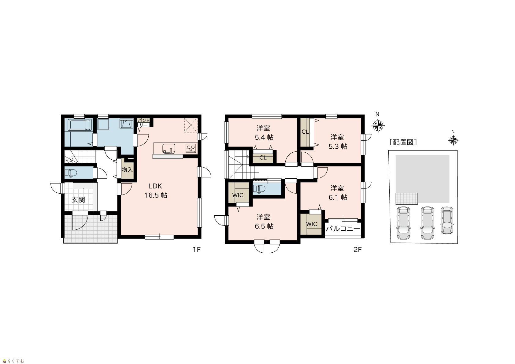 | 間取り | 4LDK (洋室:6.5、6.1、5.4、5.3) 16.5帖 |