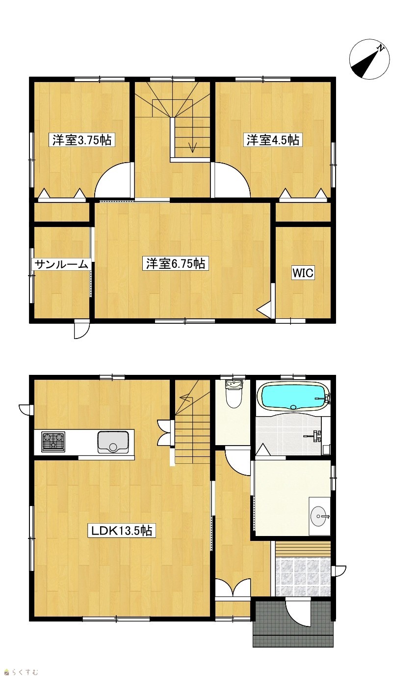 | 間取り | 3LDK (洋室:6.75、4.5、3.75) LDK13.5 |