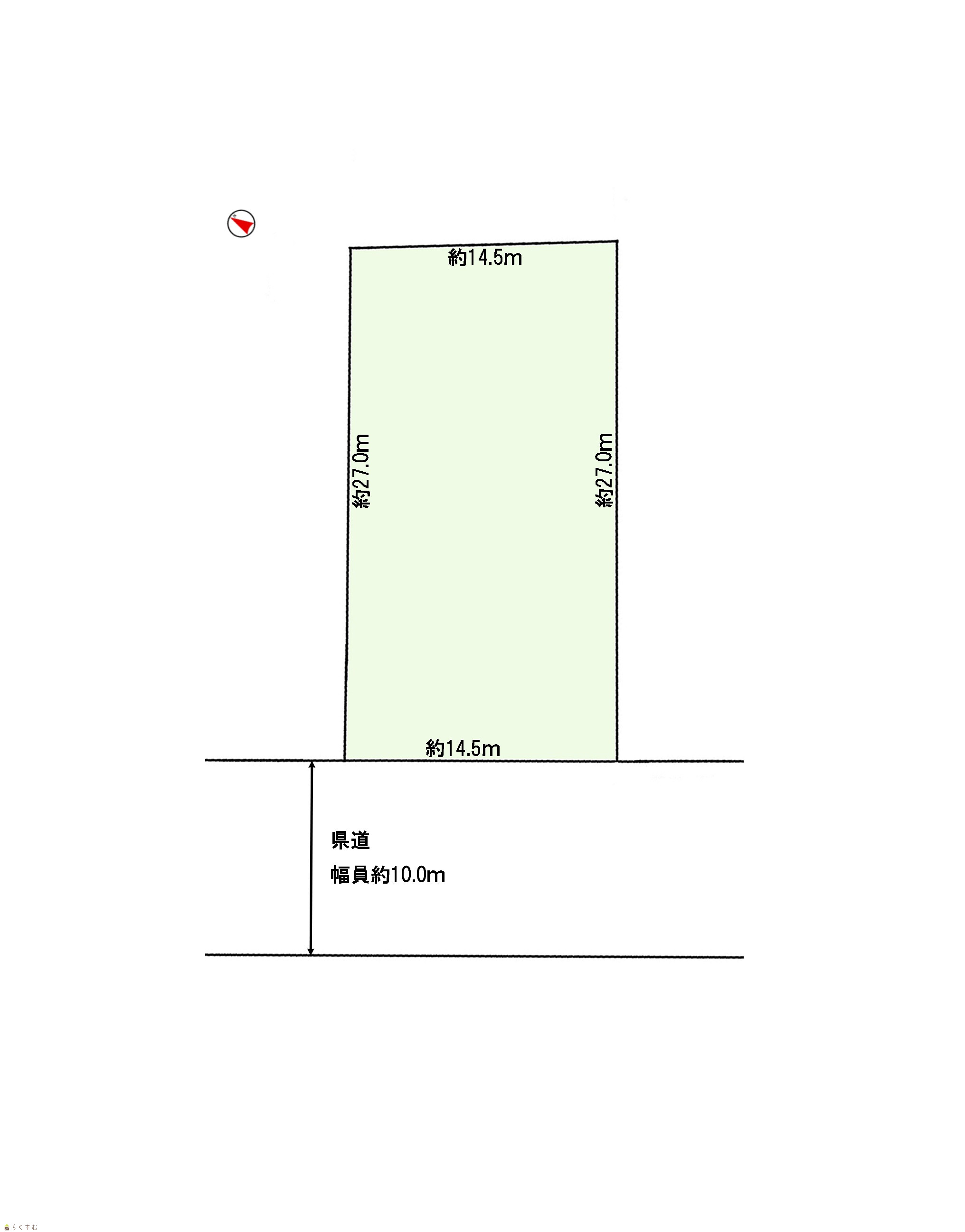 | 形状 | 間口 14.5m × 奥行 27.0m | 道路 | 西側:約10.0m(除雪道路 ) |