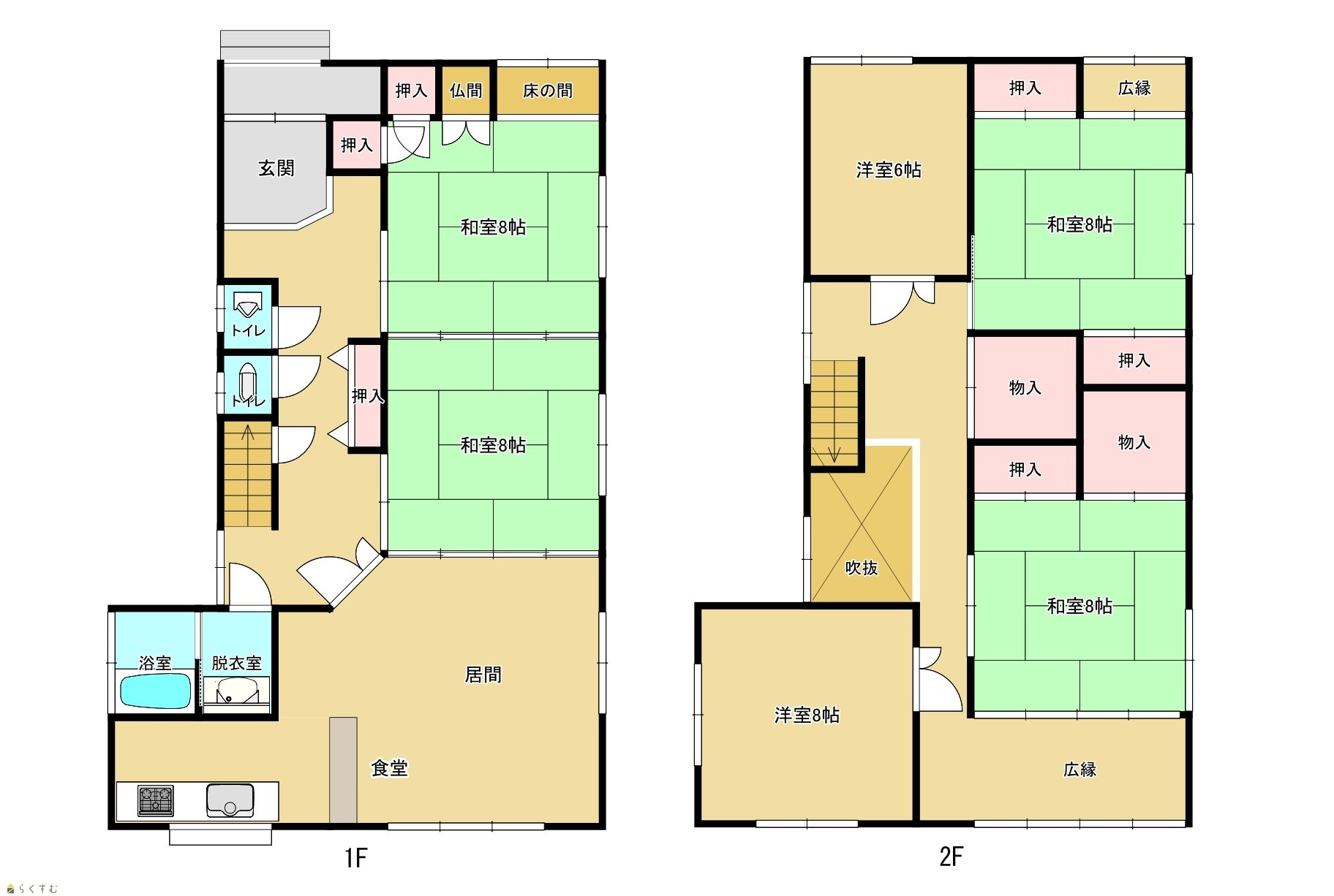 | 間取り | 6LDK (和室:8畳、8畳、8畳、8畳) (洋室:8、6) LD12 K4 |