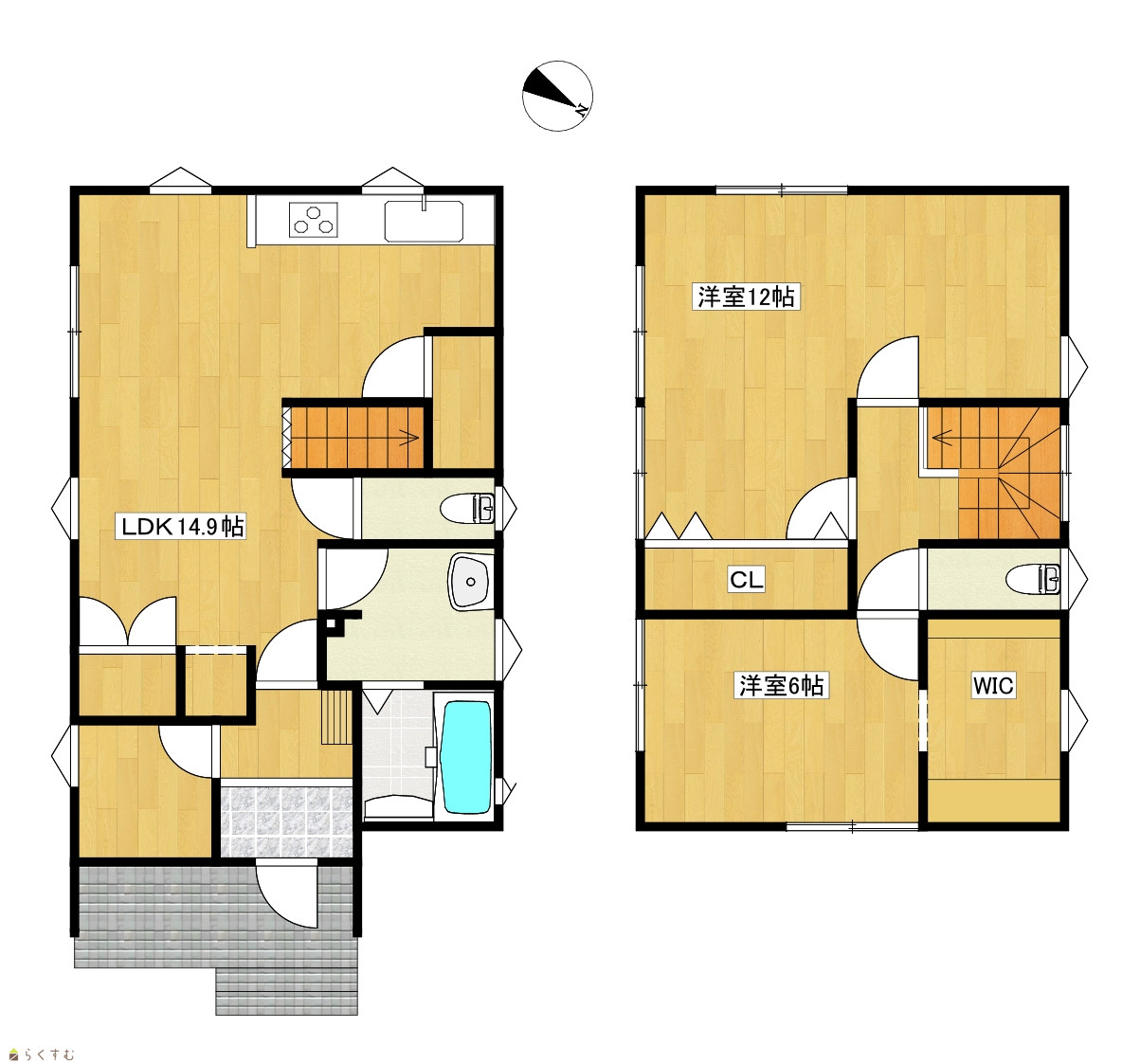 | 間取り | 2LDK (洋室:12、6) LDK14.9 2台用カーポート付 |