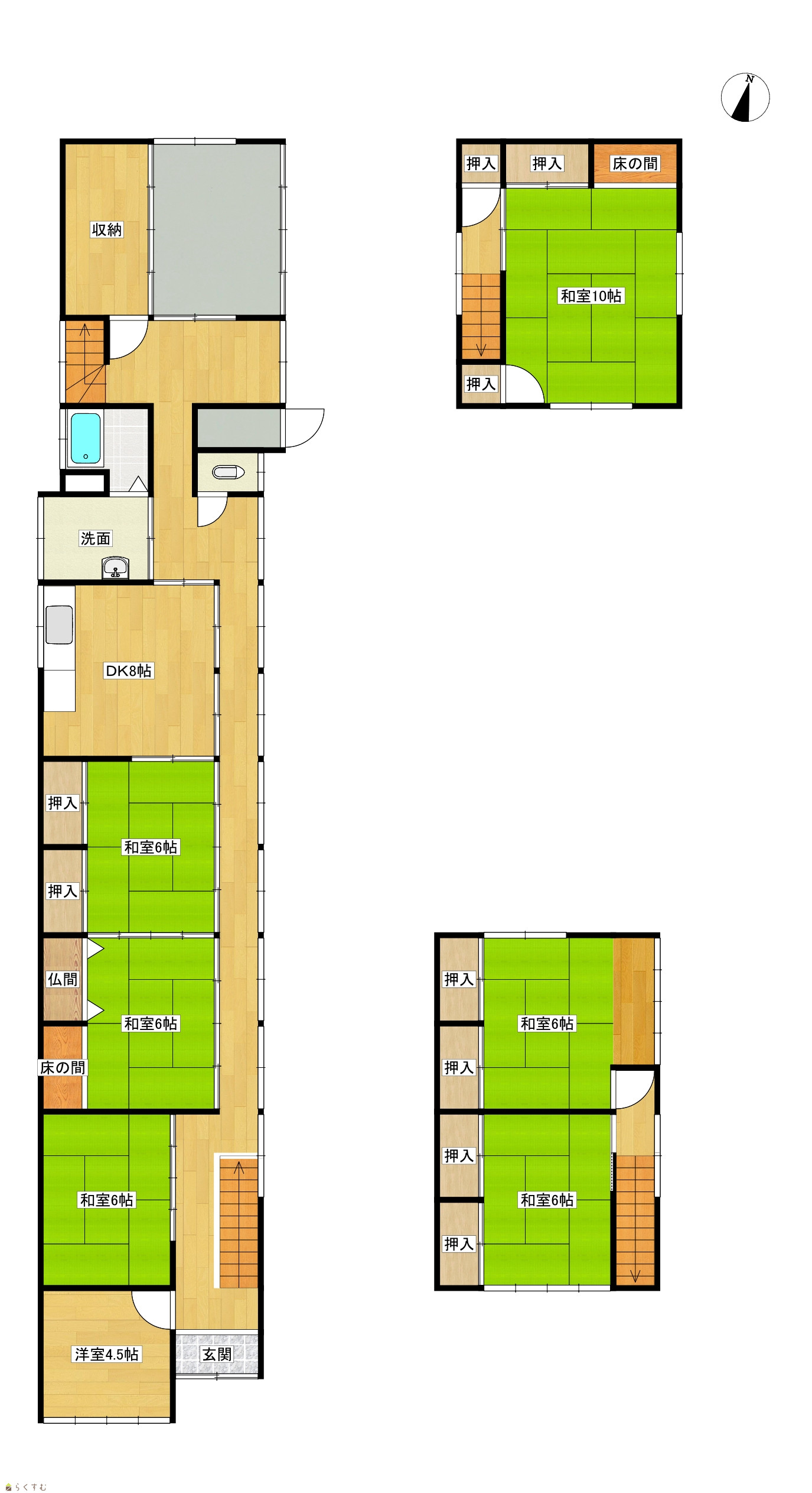 | 間取り | 7DK (和室:6畳、6畳、6畳、6畳、6畳、10畳) (洋室:4.5) DK8 |