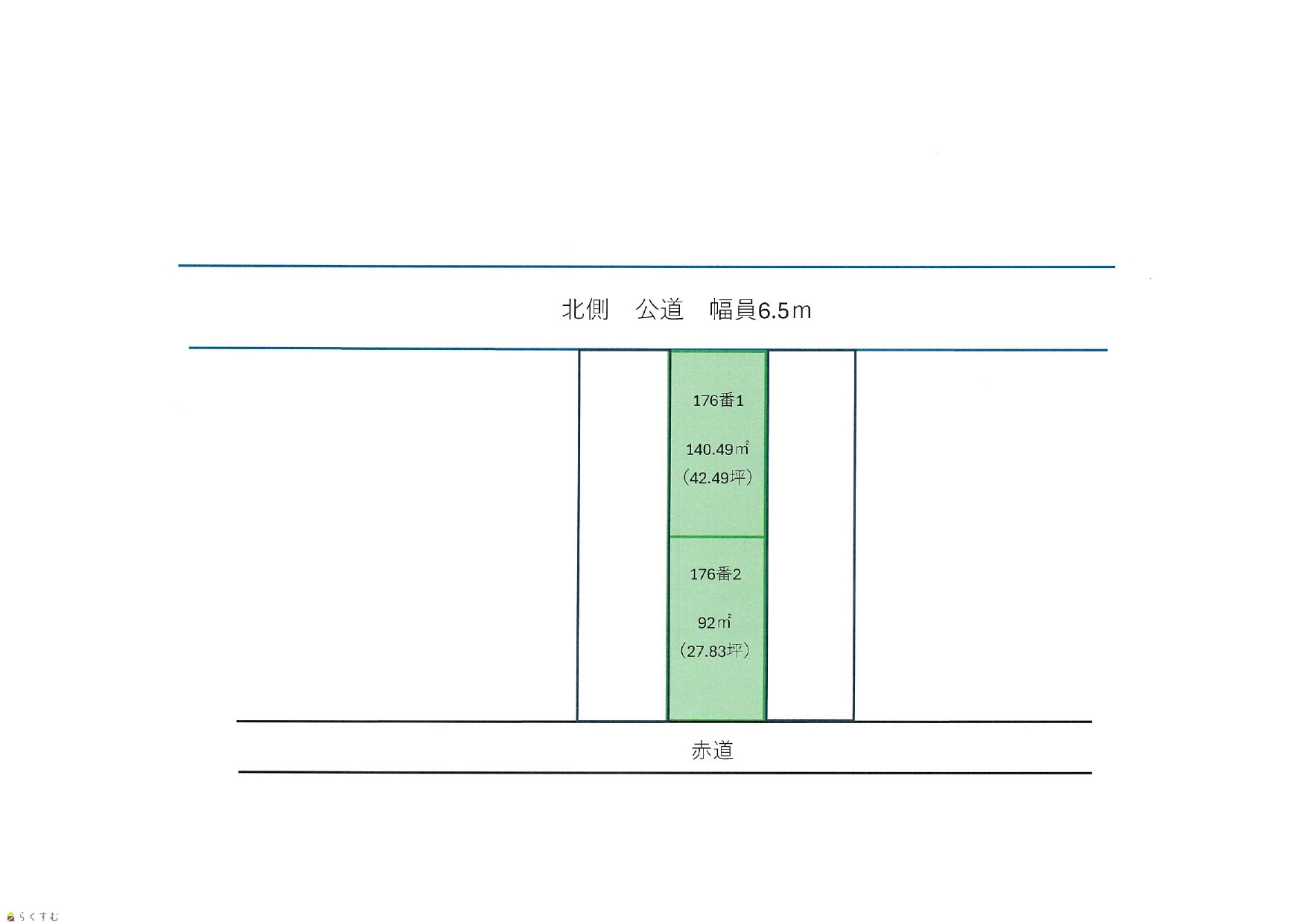 | 設備 | 前道6m以上、更地、閑静な住宅街、所有権、側溝、都市ガス(前面道路)、上水道(前面道路)、下水道(前面道路)、都市ガス(宅地内)、上水道(宅地内)、下水道(宅地内)、住宅向け | ||