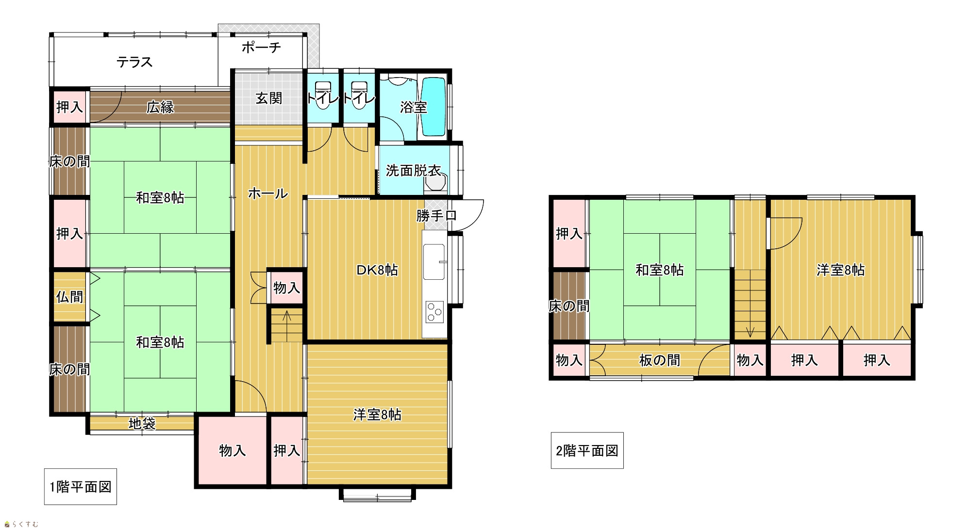 | 間取り | 5DK (和室:8畳、8畳、8畳) (洋室:8、8) DK8 |