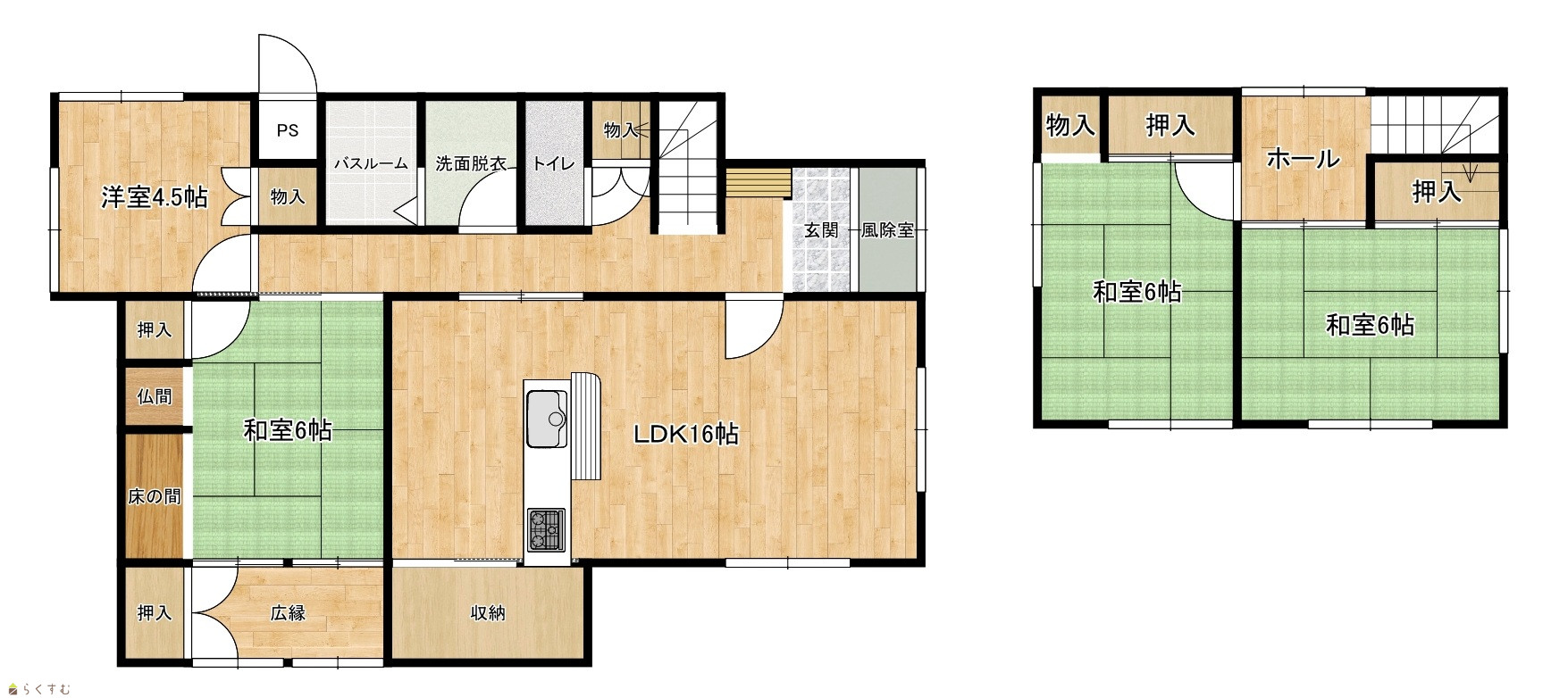 | 間取り | 4LDK (和室:6畳、6畳、6畳) (洋室:4.5) LDK16 |