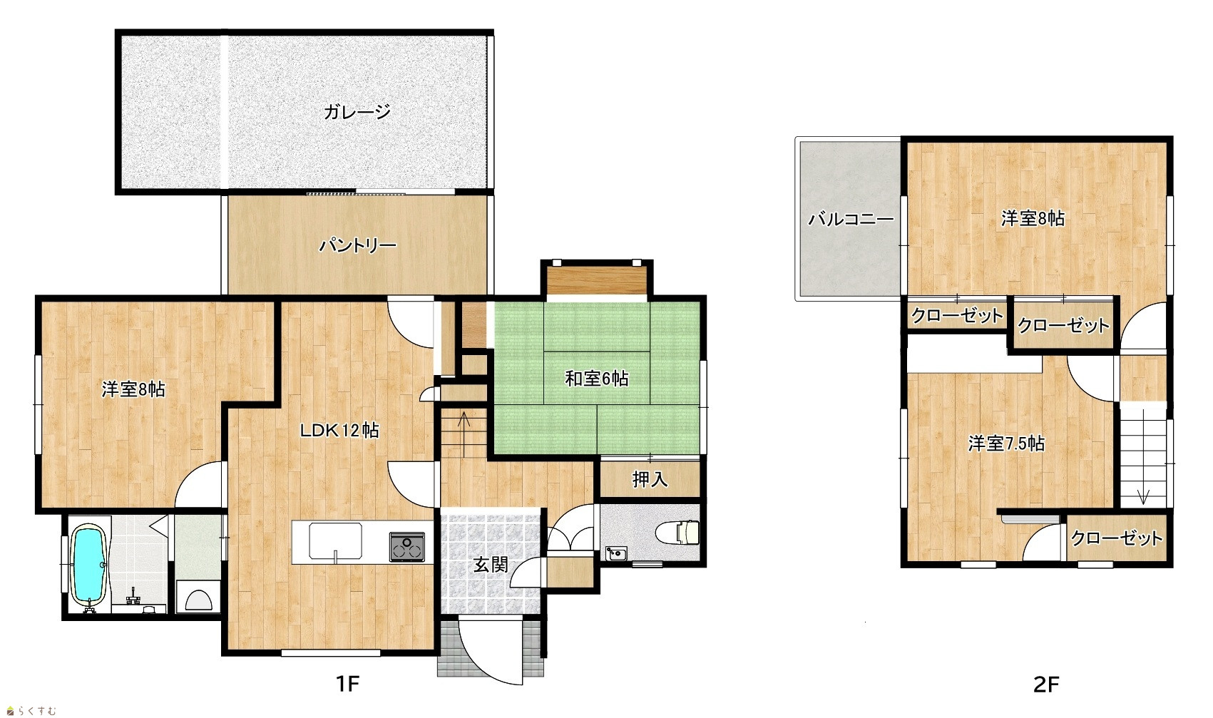 | 間取り | 4LDK (和室:6畳) (洋室:8、8、7.5) LDK12 |
