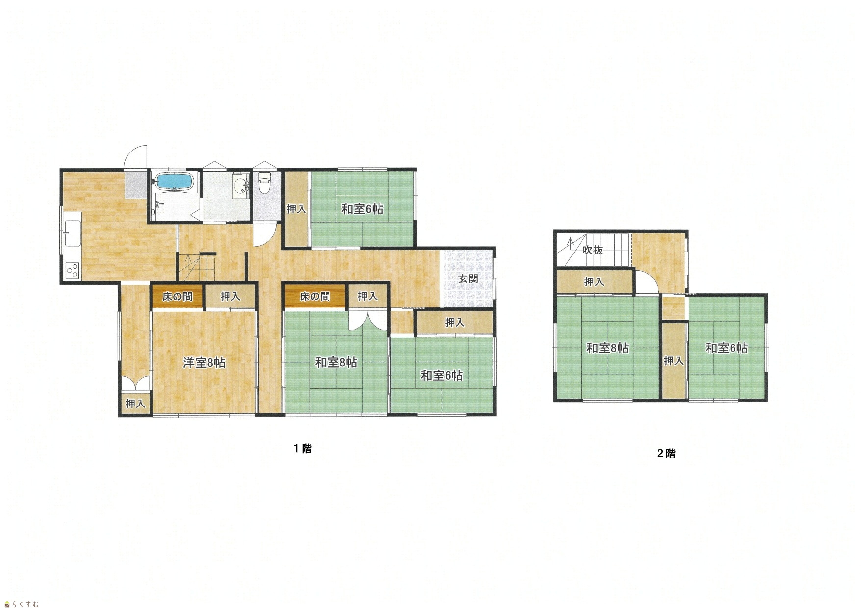 | 間取り | 6DK (和室:6畳、6畳、6畳、8畳、8畳) (洋室:8) DK6.5 |