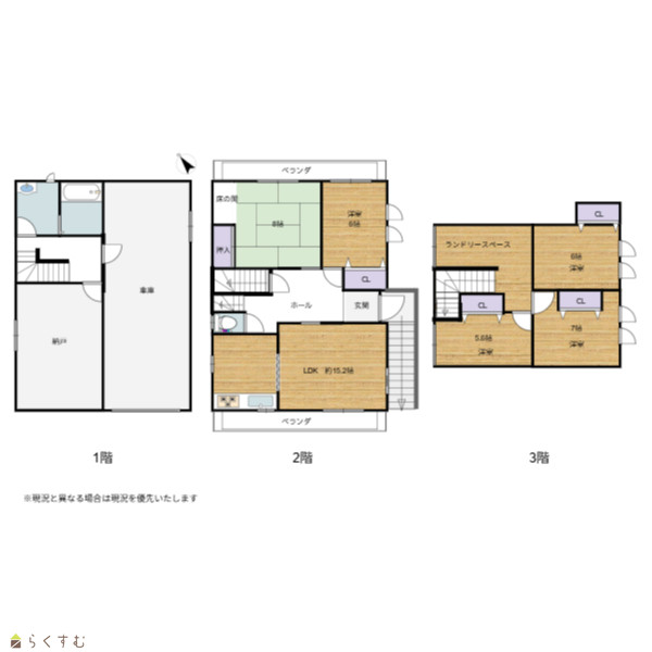 | 間取り | 5LDK (和室:8.0畳) (洋室:7.0、6.0、6.0、5.8) 15.2 |