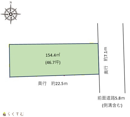 | 形状 | 間口 7.1m × 奥行 22.5m | 道路 | 前面道路 5.8m(除雪道) |