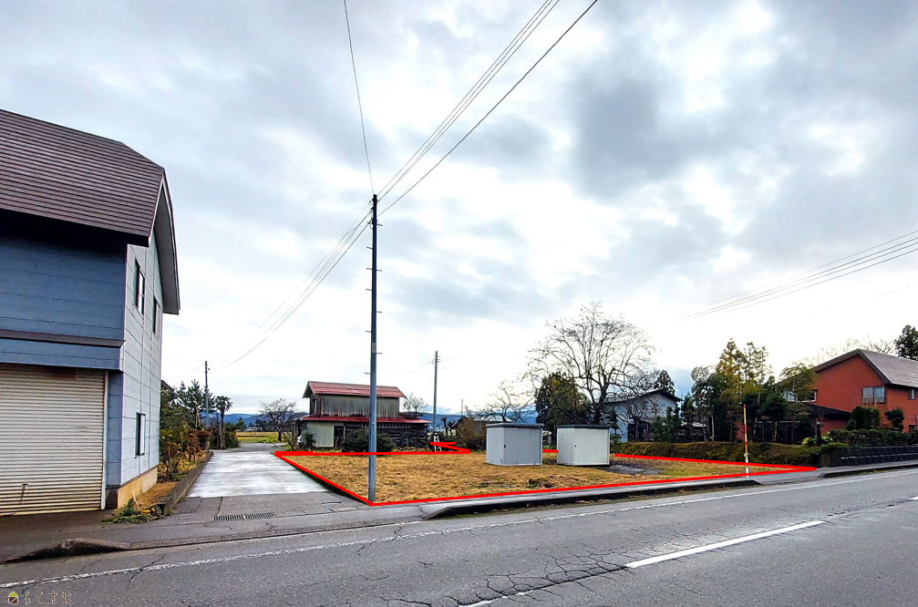 | 備考 | ・建築条件無し ・下水道引込は買主負担(下水道集落排水工事約118万+加入負担金39万円) ・現地の物置&植栽は撤去致します。 ・敷地内の電線は移動予定。 |
