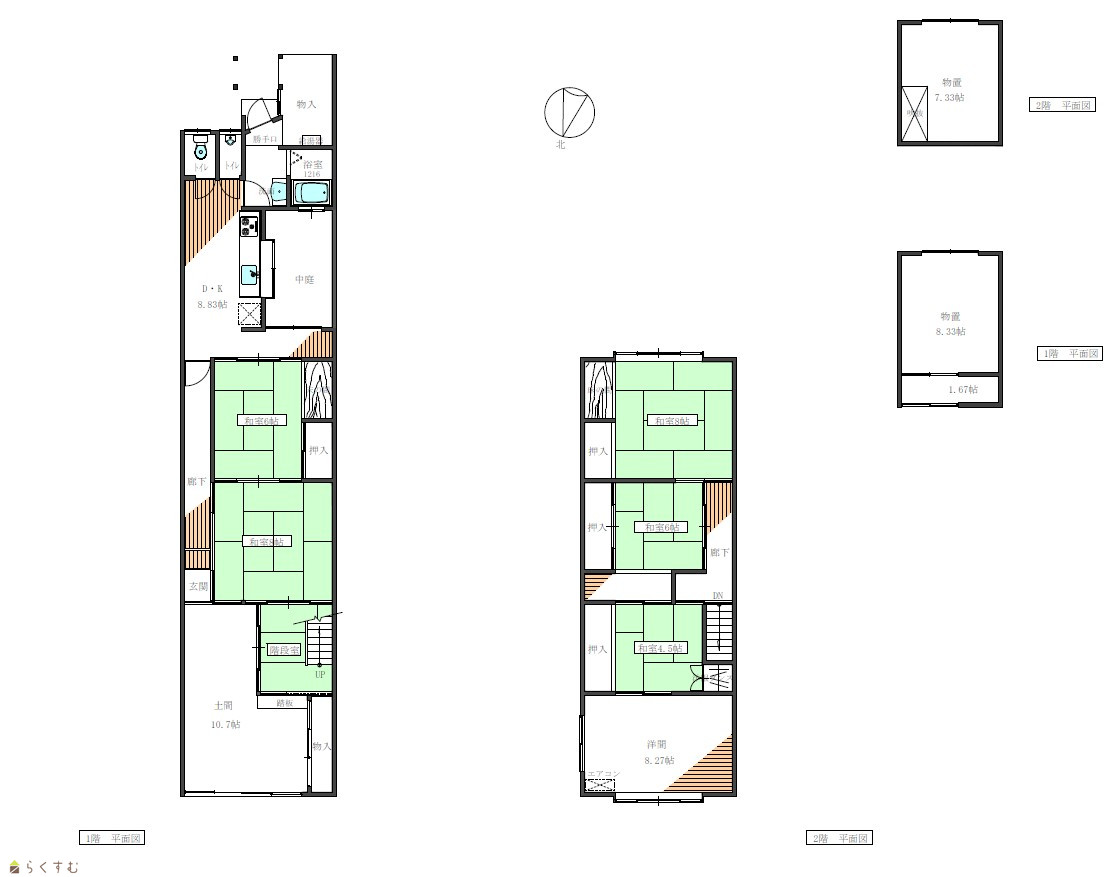 | 間取り | 6DK (和室:6畳、8畳、8畳、6畳、4.5畳) (洋室:8.2) 居間8帖 |