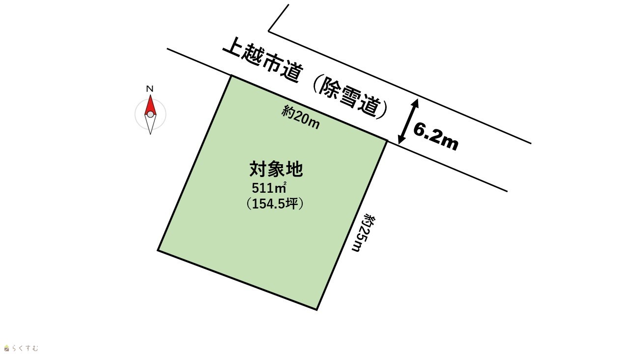 | 形状 | 間口 20m × 奥行 25m | 道路 | 北側 |