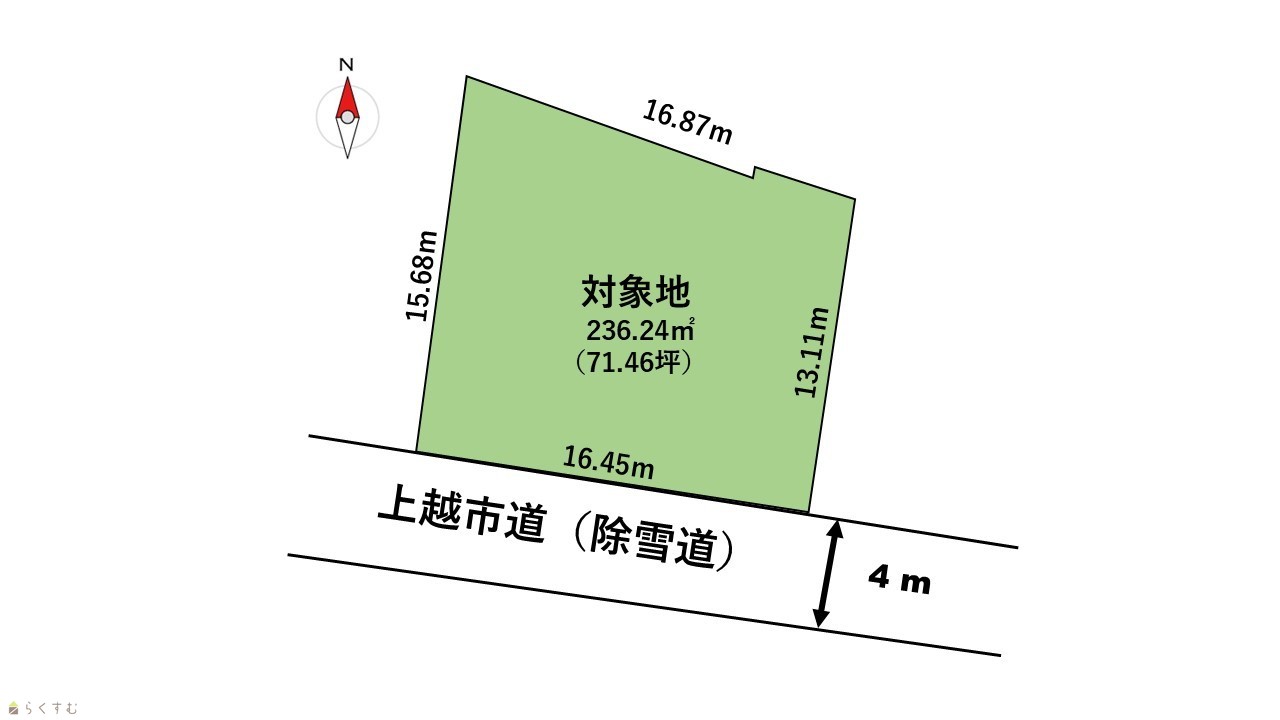 | 形状 | - | 道路 | 南:市道4m(除雪道) |