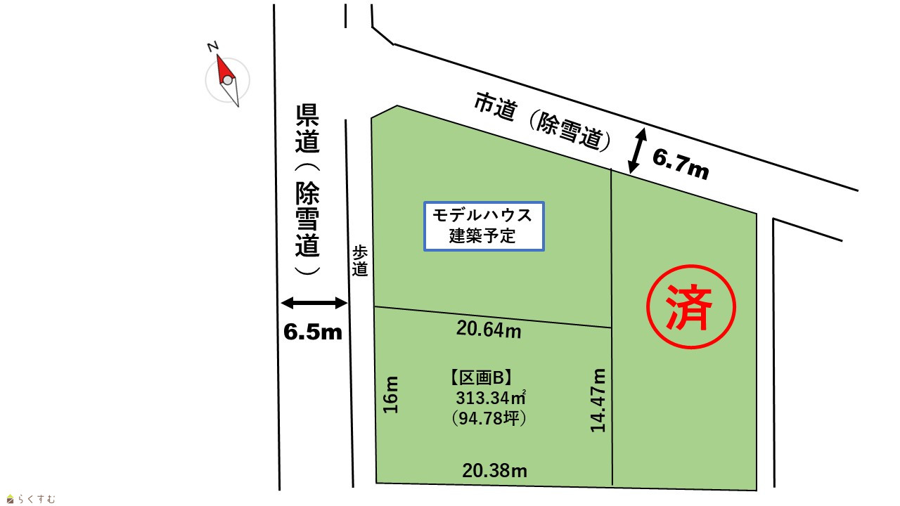 | 設備 | 前道6m以上、更地、所有権、都市ガス(前面道路)、上水道(前面道路)、下水道(前面道路)、住宅向け | ||