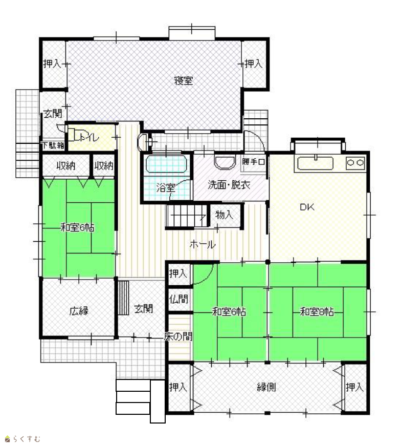 | 間取り | 7DK (和室:8畳、8畳、6畳) (洋室:11、10、6.5、6.5) DK8 |
