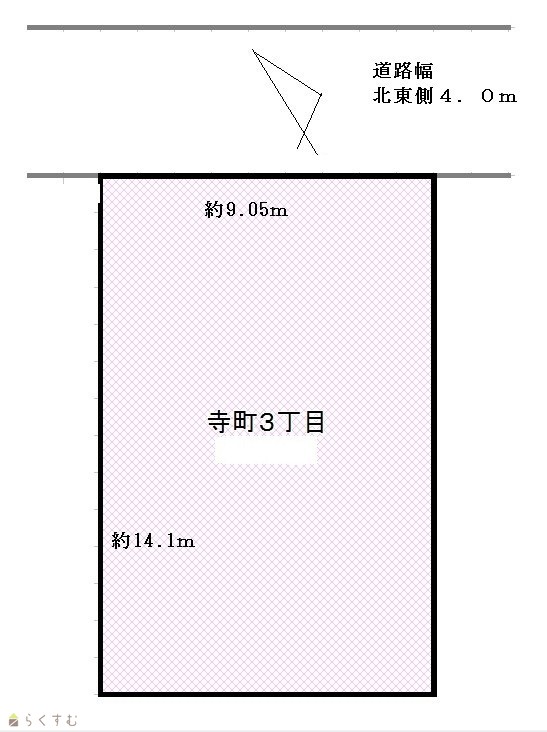 | 形状 | 間口 9.04m × 奥行 14.1m | 道路 | 北東側 約4.0m |