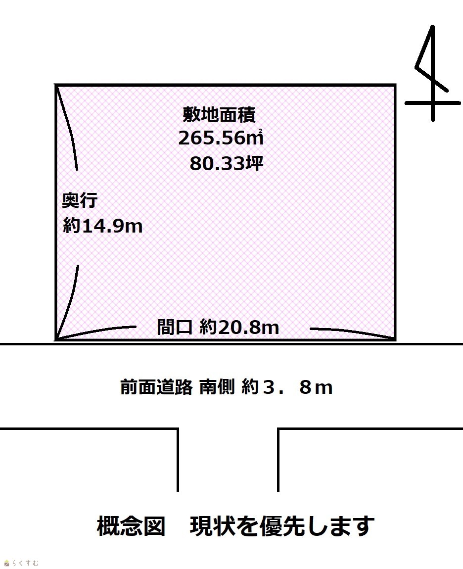 | 形状 | 間口 20.8m × 奥行 14.9m | 道路 | 南側約3.8m |