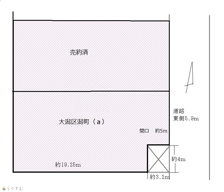 | 形状 | 間口 5m × 奥行 19.25m | 道路 | 東側約5.9m |