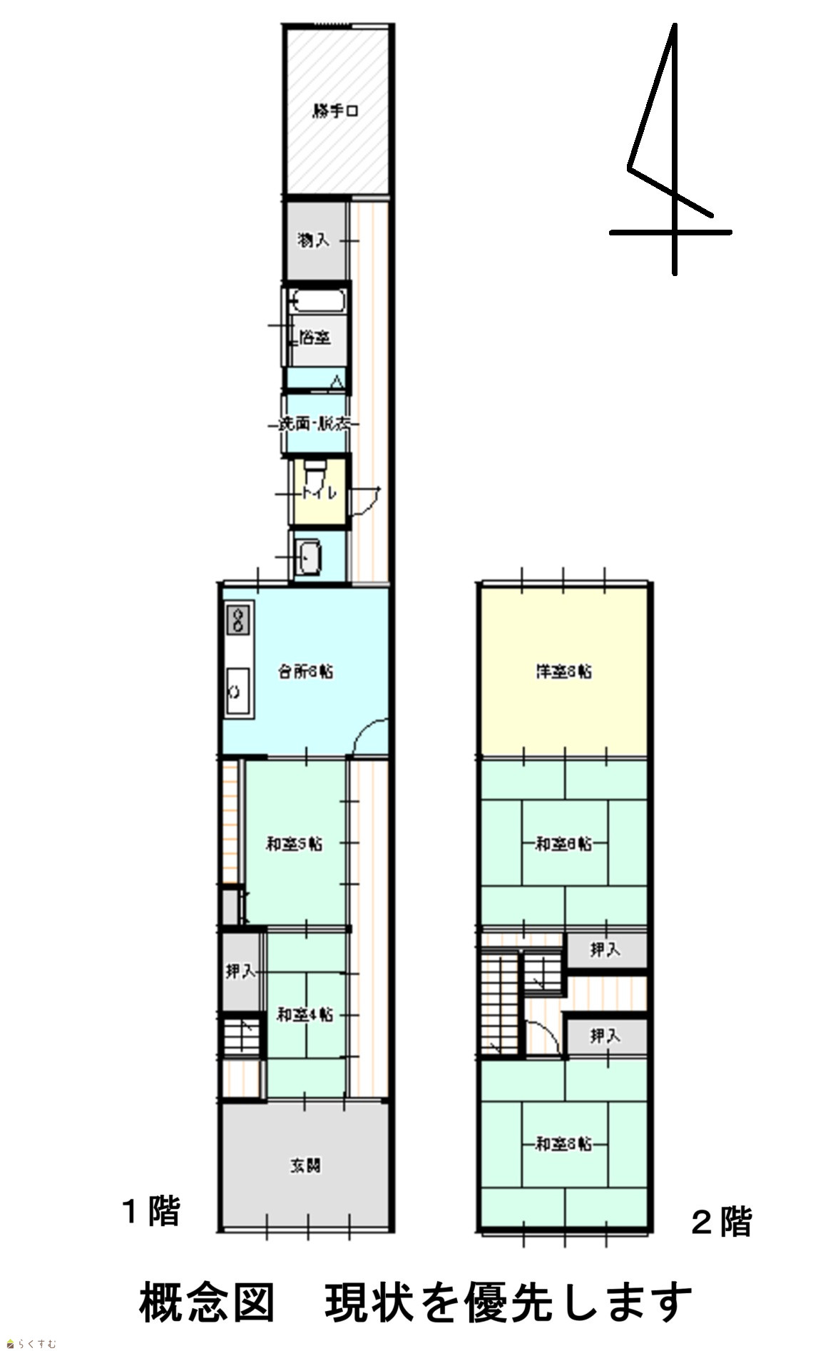| 間取り | 5DK (和室:4畳、5畳、8畳、8畳) (洋室:8) DK8 |