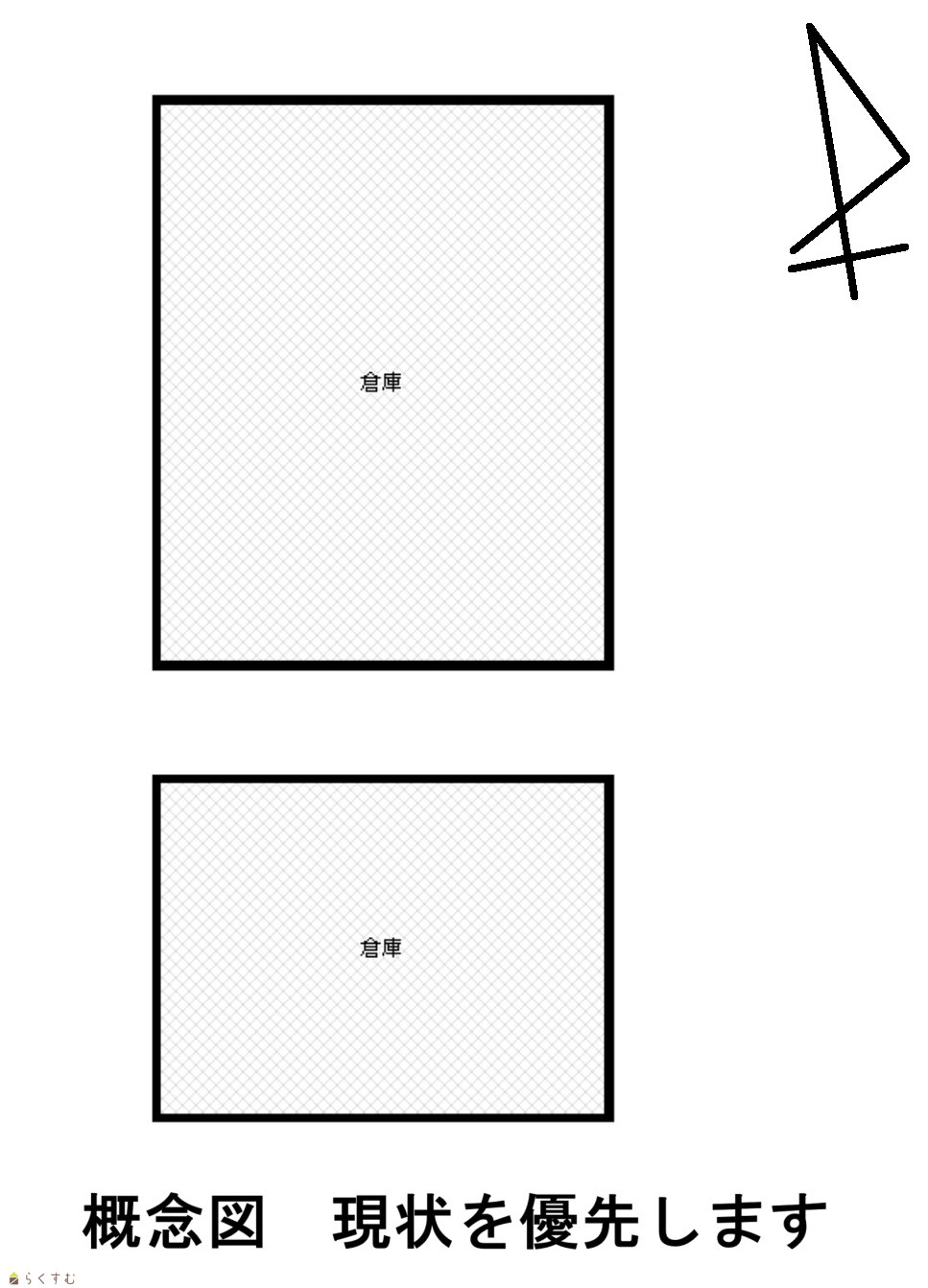 備考 | ・県道に面した売倉庫です。 ・現在1棟賃貸中です。(2万円/月額) ・水道、下水道は前面道路までで宅内引き込みはありません。 ・現状渡しで売買します。 ※本体代金に別途諸費用が掛かります。 |