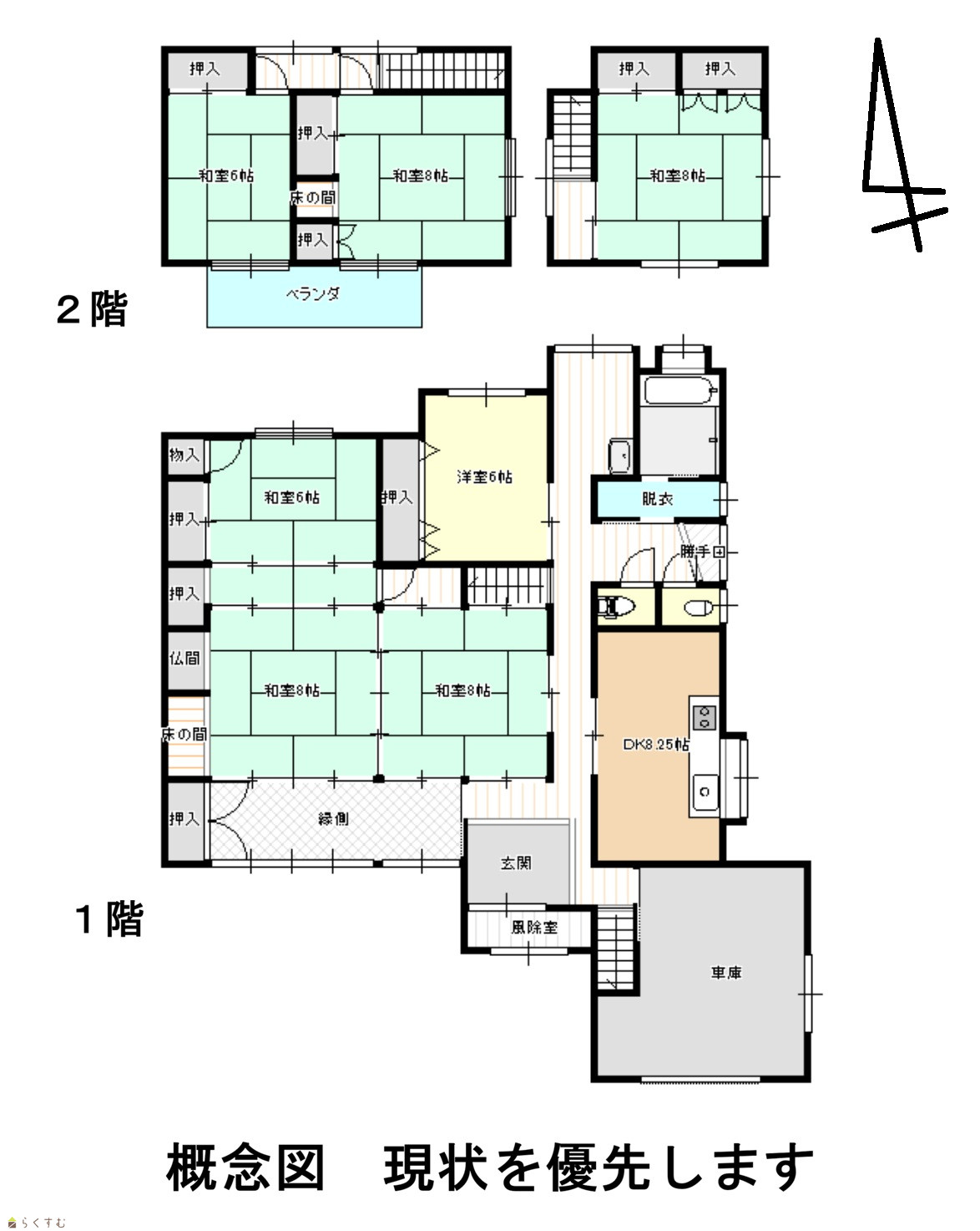 | 間取り | 7DK (和室:6畳、6畳、8畳、8畳、8畳、8畳) (洋室:6) DK8.25 |