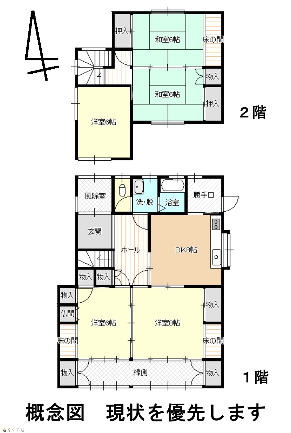 | 間取り | 5DK (和室:6畳、6畳) (洋室:6、6、8) DK8 |