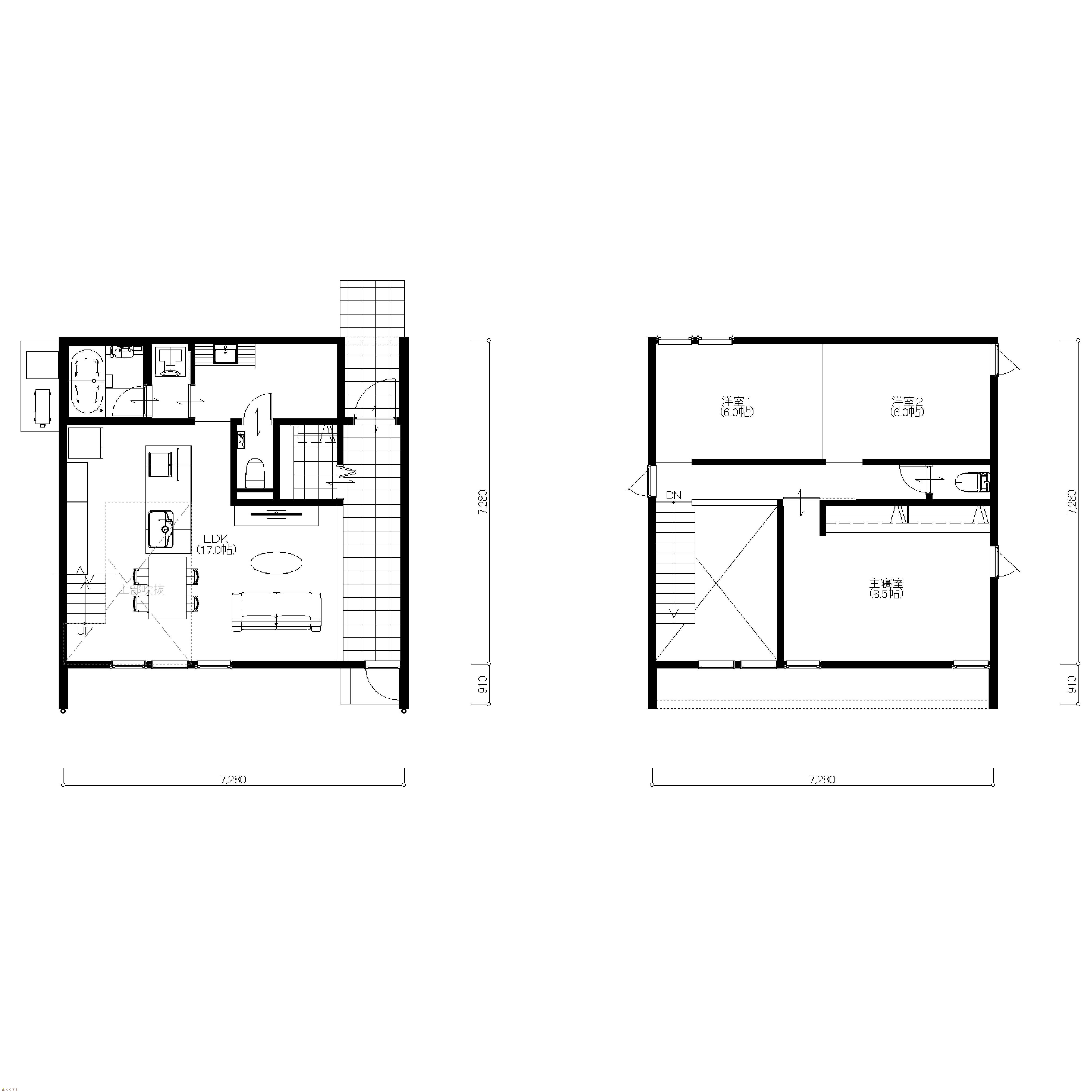 | 建物面積 | 1階 50.52㎡/ 2階 46.38㎡/ 計 96.9㎡ /29.31坪 | ||