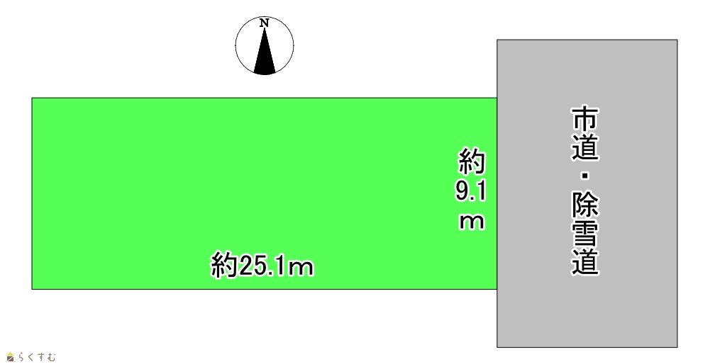 | 形状 | 間口 9.1m × 奥行 21.1m | 道路 | 公道 東側 幅員約9.5m(歩道含む) |